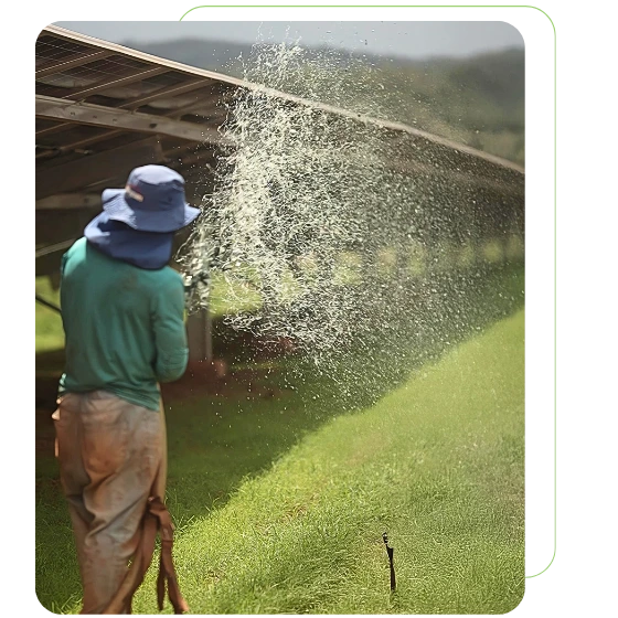 Para plantio de grama entre os painéis, redução da poeira e aumento da eficiência da usina.